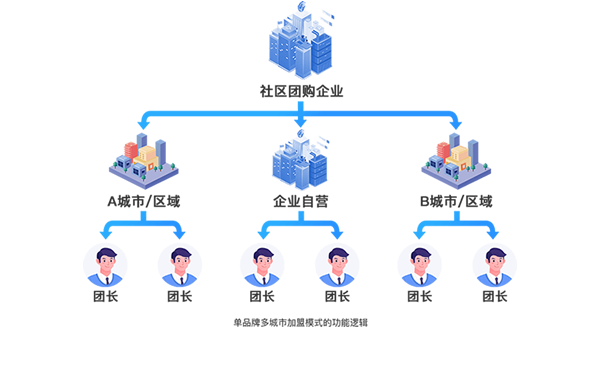 社區(qū)團(tuán)購平臺(tái)不斷發(fā)展,規(guī)模逐漸擴(kuò)大,開始向周邊城市擴(kuò)張,發(fā)展跨城市加盟商,同時(shí)周邊城市開始有商家申請(qǐng)加盟合作。平臺(tái)向加盟商傳遞經(jīng)驗(yàn),加盟商結(jié)合當(dāng)?shù)靥厣?差異化運(yùn)營。